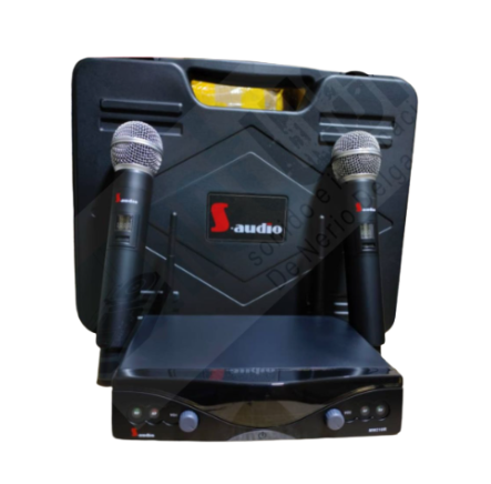 - Sistema Inalámbrico Doble: Incluye dos micrófonos de mano inalámbricos (en este caso, de color plateado) y un receptor de doble canal.